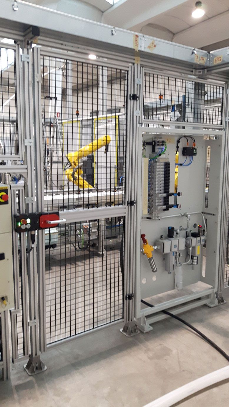 I nostri sistemi di sicurezza in alluminio e ferro sono progettati per ogni tipo di linea industriale, anche in presenza di robot collaborativi o isole automatizzate.